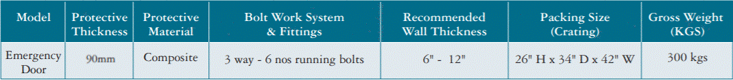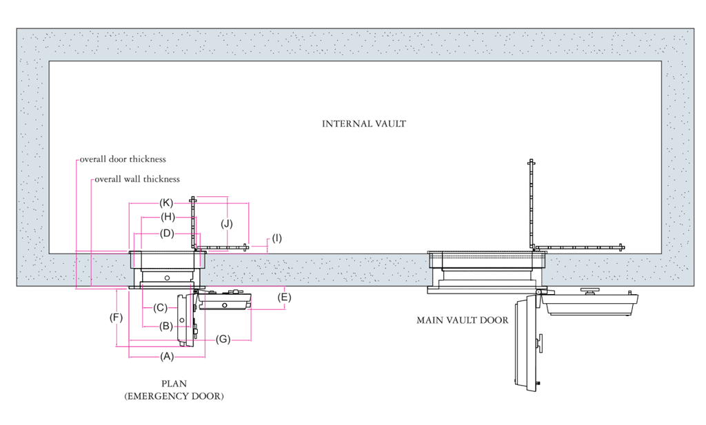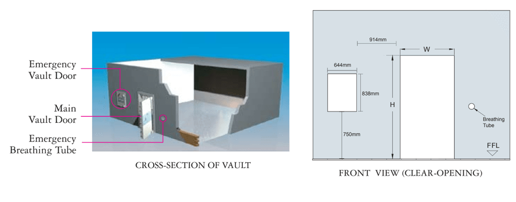 Emergency doors are an optional solution for emergency exit of vault when such a situation arises. Give yourself a fighting chance in the event of an emergency.